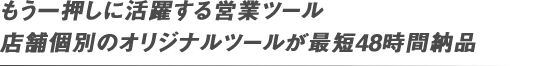 ◆営業先様ごとのオリジナルツールも最短48時間仕上げ。 契約までのもうひと押しを、スピーディーに応援します!